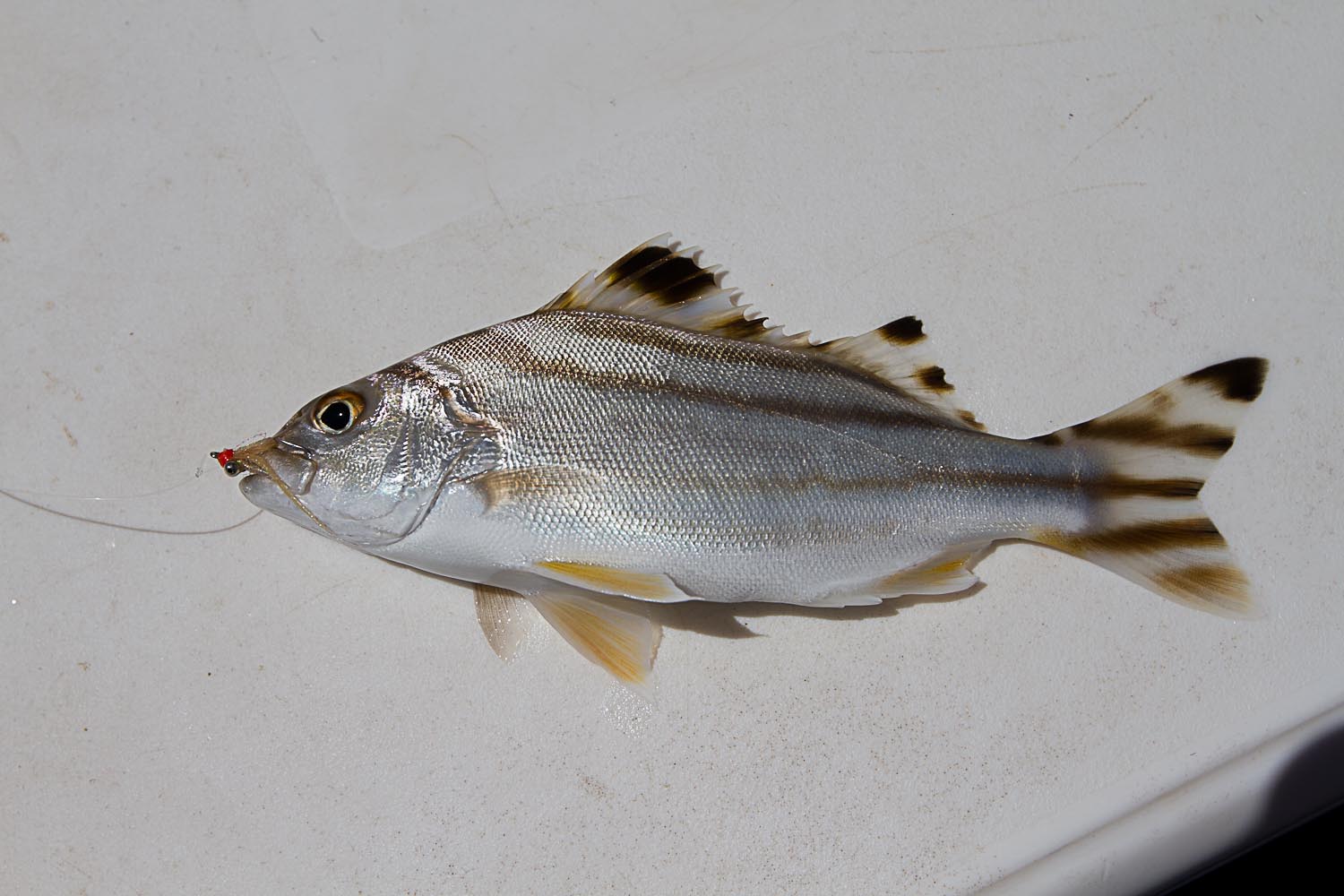 It was a week of firsts for me - got my first tuna on fly (Mac Tuna) after 4 sharkings. Also cracked the meter mark with a 1.10m Queenee in thigh deep water (unfortunately no pictures as Dave was rushing off across the flat chasing Permit)! Almost got me a cracker of a brassy but it spanked me on my 12wt after a 10min fight. Saw plenty of huge GTs on the flats, lots of Permit but didn't manage either - next time