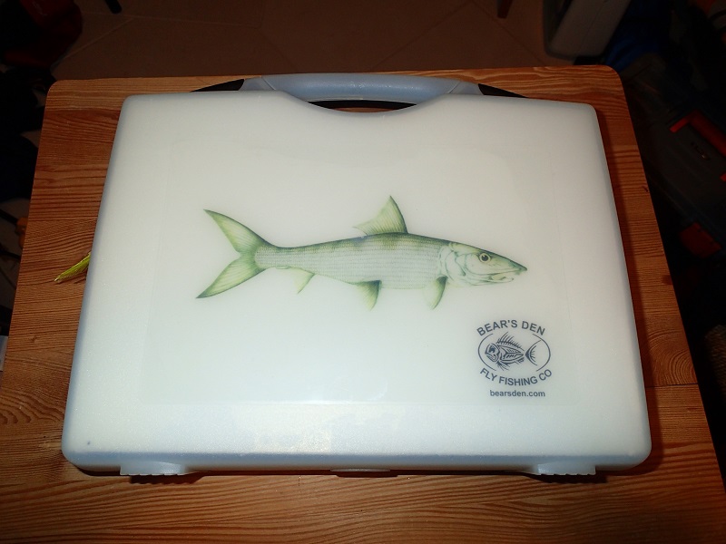 This is a medium fly box from Bear's den with the bonefish image on the front. Box is in good condition and comes with 130 bream flies of all sorts. All flies are unused.