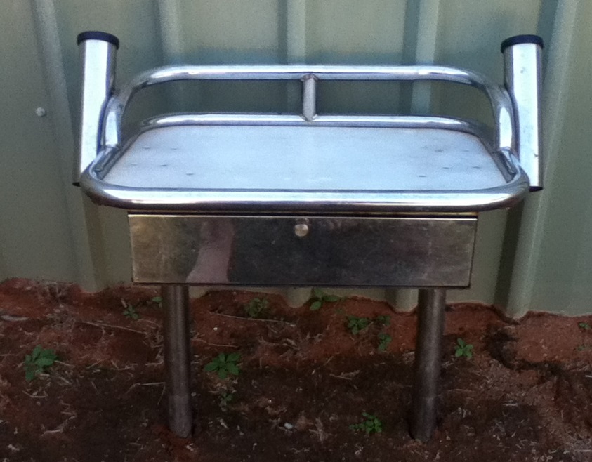 Stainless steel bait board, in good condition $200. Legs are adjustable width