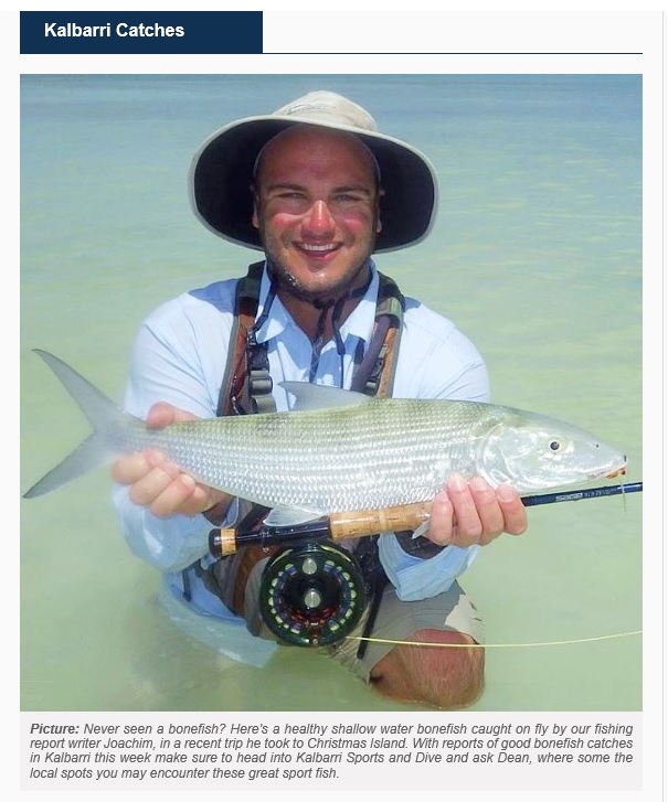 Is this a regular occurrence, I thought that the bonefish were limited to the Ningaloo area? I wouldn't think they'd be catchable at Kalbarri due to the rough ocean conditions. Flyfishing off the ledges would be interesting to say the least...