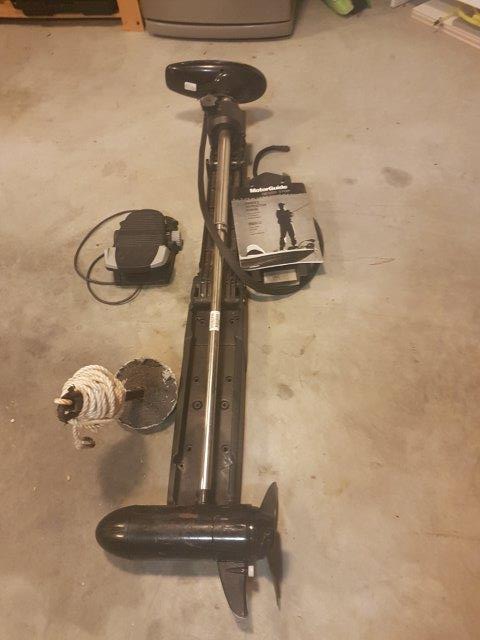 Motorguide 55lb 12V with foot pedal control. Comes with old school spot lock (aka plonk)