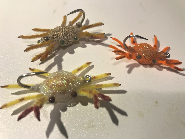 Leg/Claw markings & colour – use coloured markers to segment the legs & claws and add colours to match your intended crab imitation (yellow for ghost crabs, blue & purple for swimmer crabs etc).