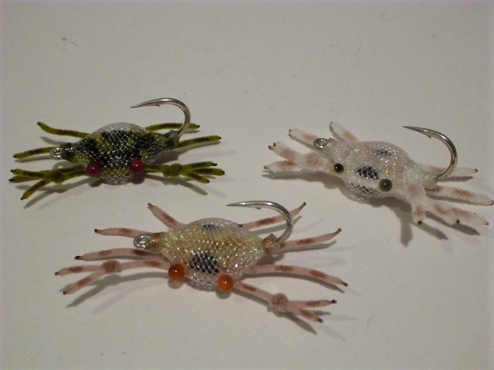 Eyes – 2 x Epoxy mono crab eyes (colour of your choice) threaded through the body at the base of the claws and glued in.