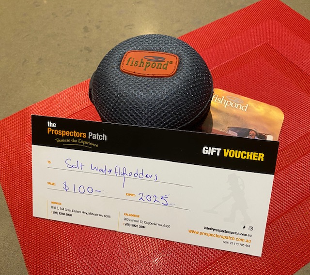 HI Flyrodders November's raffle prize is generous donated by one of our newest member Angus from The Prospectors gift voucher valued at $100.00 and a Fish Pond fly reel case so I hope you pick a winner and find time to attend November's meeting.