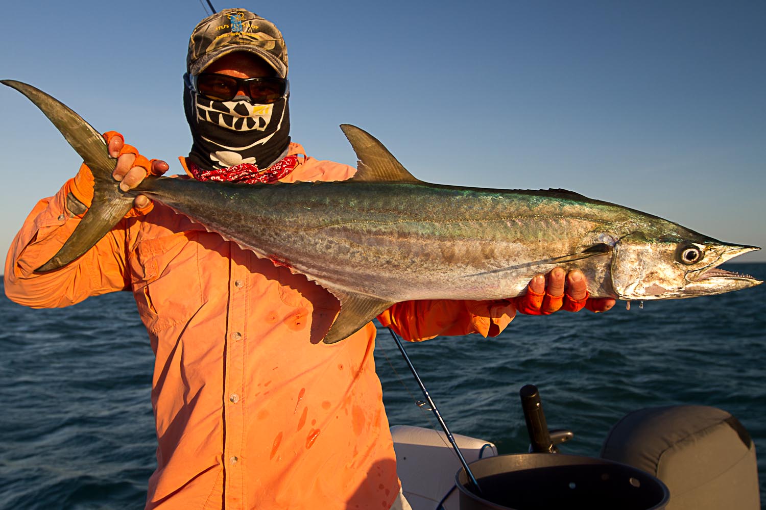 This was to be the last of our days crossing the gulf. Arnold and his crew had found bait stacked up in front of Bay of Rest. Five minute run to the spot, in the lee of mainland, it was a no brainer where we were all headed the next day. With the amount of bait around, you'ld think that we were in for the time of our lives. Unfortunately, there was probably more bait than preditors around. We still had to work hard for the fish. Charging into the schools just seemed to put the fish down. We all opted on long drifts, with fingers crossed that we would happen onto a bait ball when the preditors found them. Feeding were goldens, giant trevally, gold spot trevally, mack tuna, longtail, school mackerel, and the half dozen other species that I've probably forgotten to mention. Some of the school mackerel were reasonable.