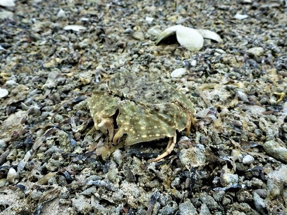 Pebble crab (upside down) Whitmore Island sand flats