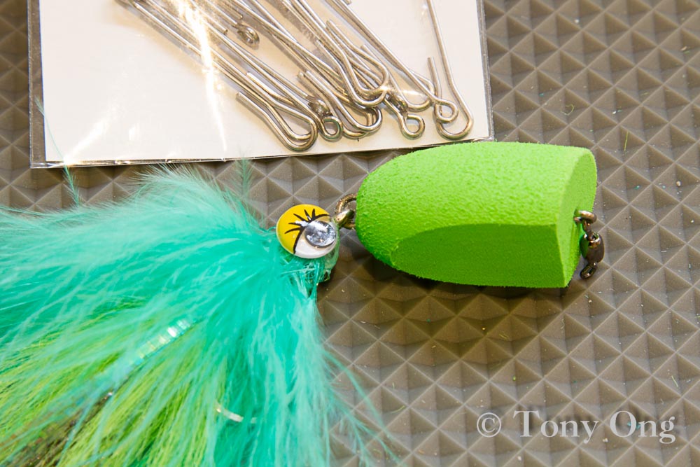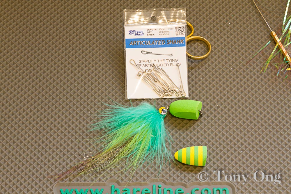 I've also crimped a small swivel into the articulated shank. Stops line twist that usually occurs with bulky top water flies.