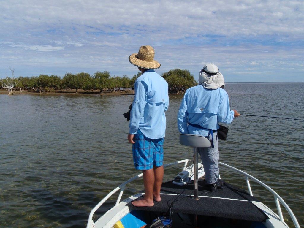 Steve with a Mangrove Jack From Murion Island Ross with late evening spangly Those who have fished Exmouth will recognise the background.