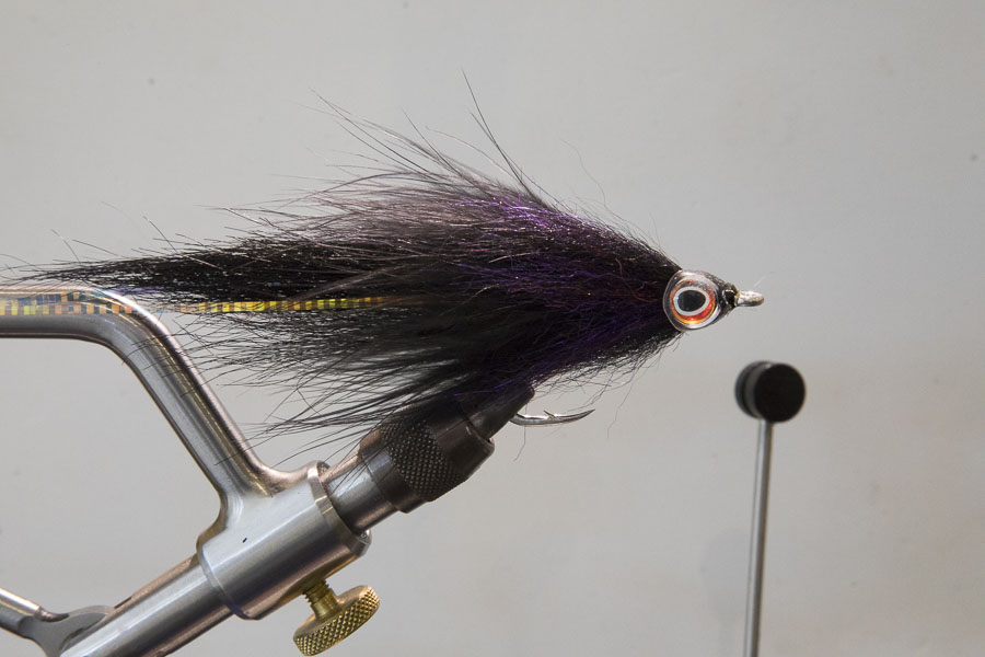 Step 9. Eyes. I like adding eyes, as to me it completes a fly. Fish Masks by Fish Skull are a nice way to finish off the fly. Super glue gel to fix fish mask to fly. Build a small dam of thread between the mask and hook eye, and seal with either head cement or uv glue. This will help keep the fish mask from slipping off.