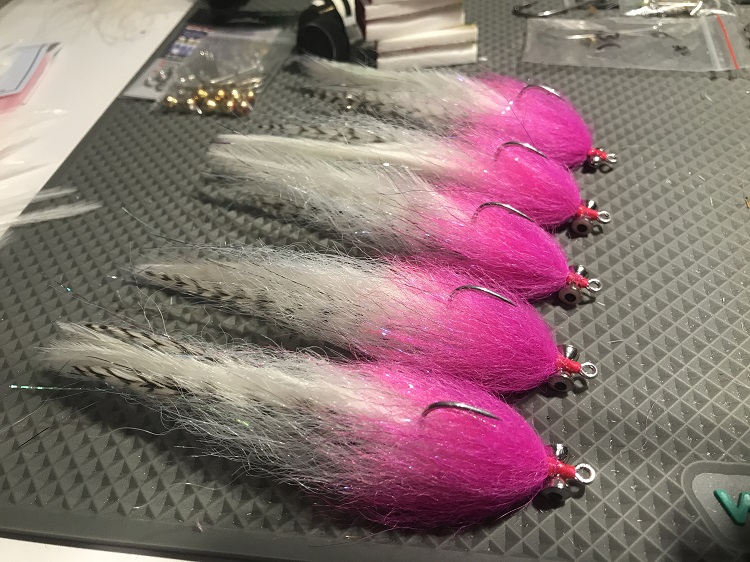 June’s fly of the month is the Pink Thing. Tied and introduced into the Australian fly fishing scene by Darwin fly fisherman Graham White (originally tied to replicate a rubber tailed jig known as a vibrotail) it was based on a combination of two very successful flies, Dan Blantons ‘Whistler Fly’ and Lefty Kreh’s ‘Deceiver’. Read the full evolution of this wonderful fly in Peter Morse’s book ‘A Few Great Flies & how to fish them’. Since then it has become possibly one of the most popular flies in Australia for Barramundi, but it’s also a great fly for many other species and fly fishing situations. Depending on the weight of the finished fly (beadchain eyes, brass eyes, added lead wire etc) this fly can be very effective from shallow flats and snag bashing through to deep water reefs in clear or dirty water. It can be used to catch a variety of species including Barramundi, Threadfin salmon, Mangrove jack, Fingermark bream, Cod, all Trevally species, Queenfish, Cobia, most Mackerel species, Longtail tuna, Coral Trout, Australian Salmon (Kahawai), etc etc. It is essentially a baitfish fly with a saddle hackle tail for plenty of movement, barred grizzly hackles for fright stripes, some flash, bucktail around the tail to prevent fowling, some wide sparkle chenille (estaz) with a collar of palmered schlappen hackle to give more of a profile. A large weighted 4/0 pink thing (XL brass eyes or a ball sinker in the loop knot) is my personal go to fly for deep water reefs or shoals like those found in Exmouth gulf and can also be deadly fished in a burley trail and deserves a place in everyone’s fly box for Exmouth.