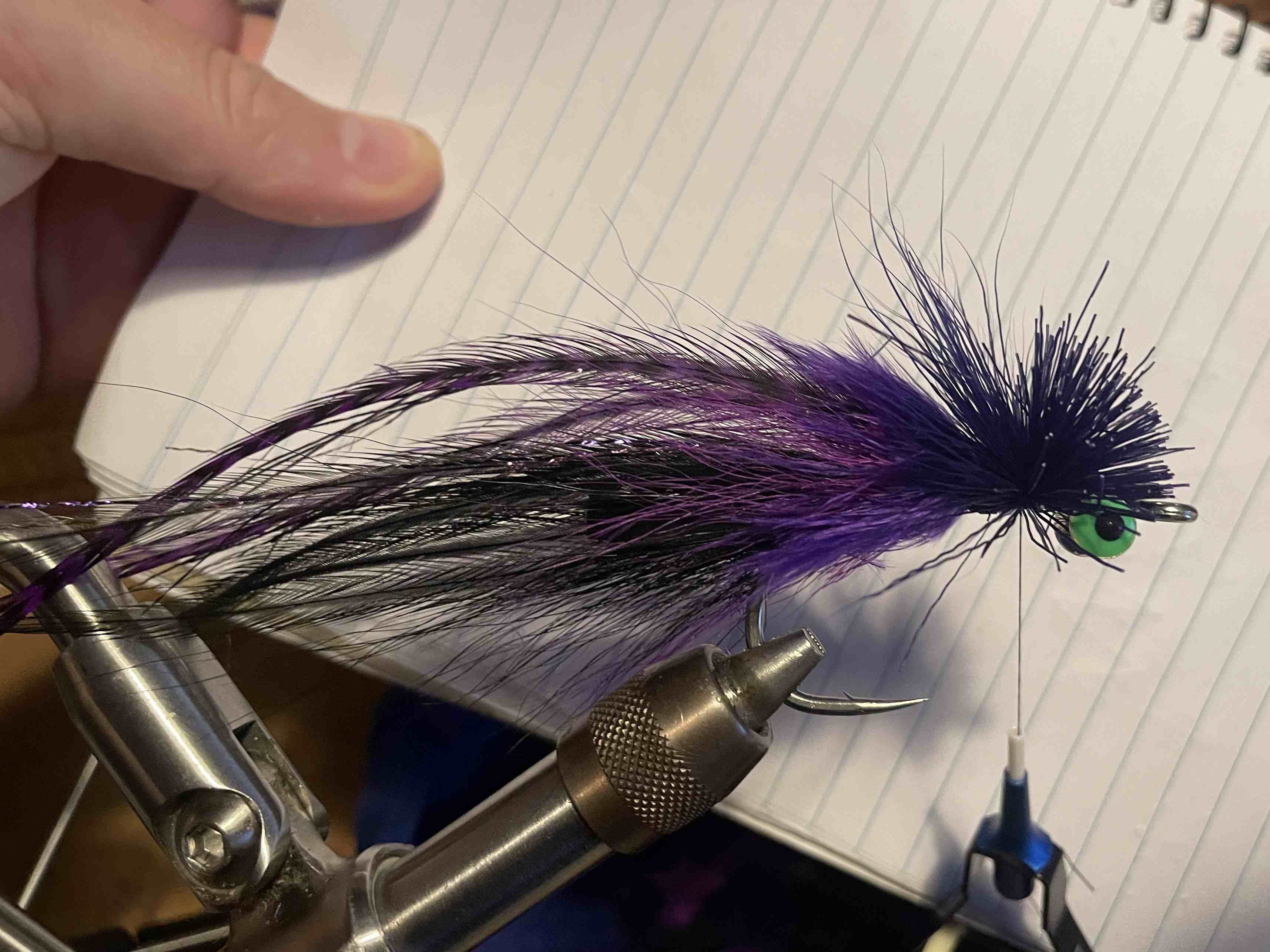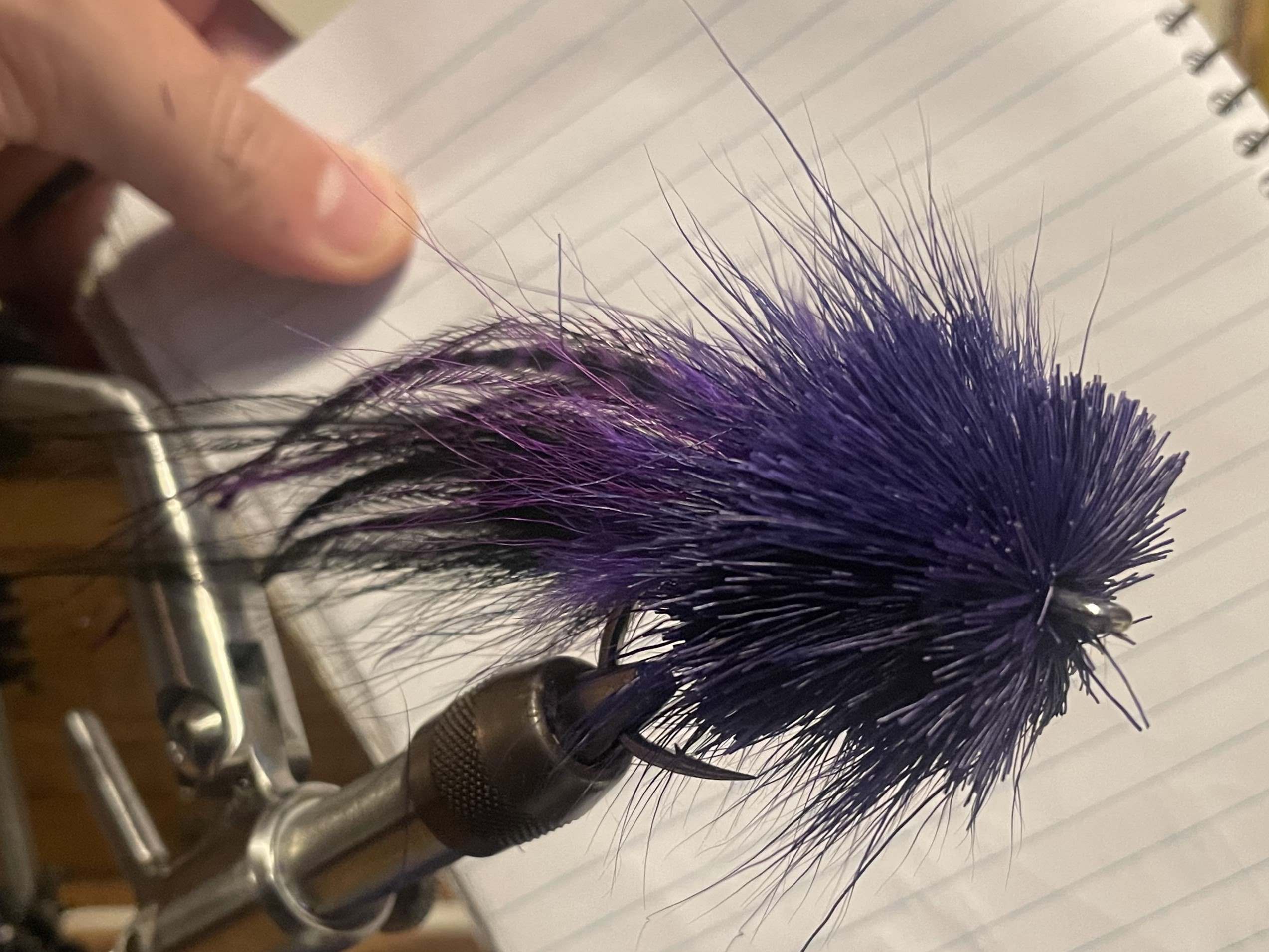 Tie in some purple bucktail with extra-long butts - to reverse tie back.