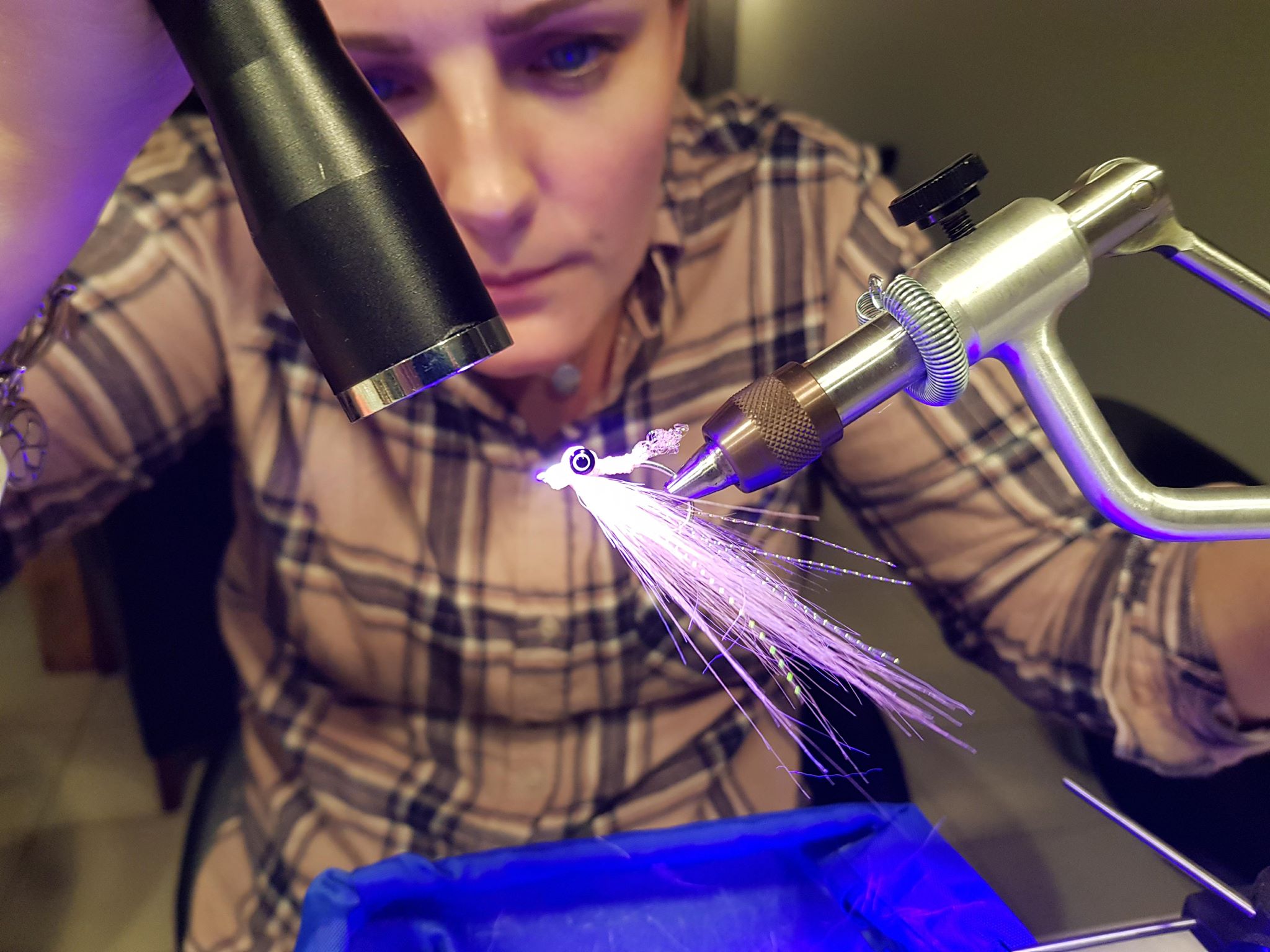 my sister in law wanted to make a present for her dad Nicky who is an avid flyfisher back home. Mainly trout, salmon, sea trout and sea bass, some of you may have met him at the odd club meet with me once or twice. So she asked me to let her tie three flies in different colours, one representing her, and the other two representing her two daughters so that she could then display them in a photograph frame and give it to her dad. We have tied up three nice flies, and she has done very very well I might add! A 2O Clouser, Size 2 surf candy and a size 2 crazy charlie gotcha. Now we are trying to figure out how to hang / display these within the photo frame. Ideally they would be out a bit from the backing so you can get the shadows and writing under each fly.
