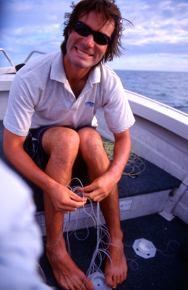 Simon Pen learning not to try and change fly lines on a rocking boat !