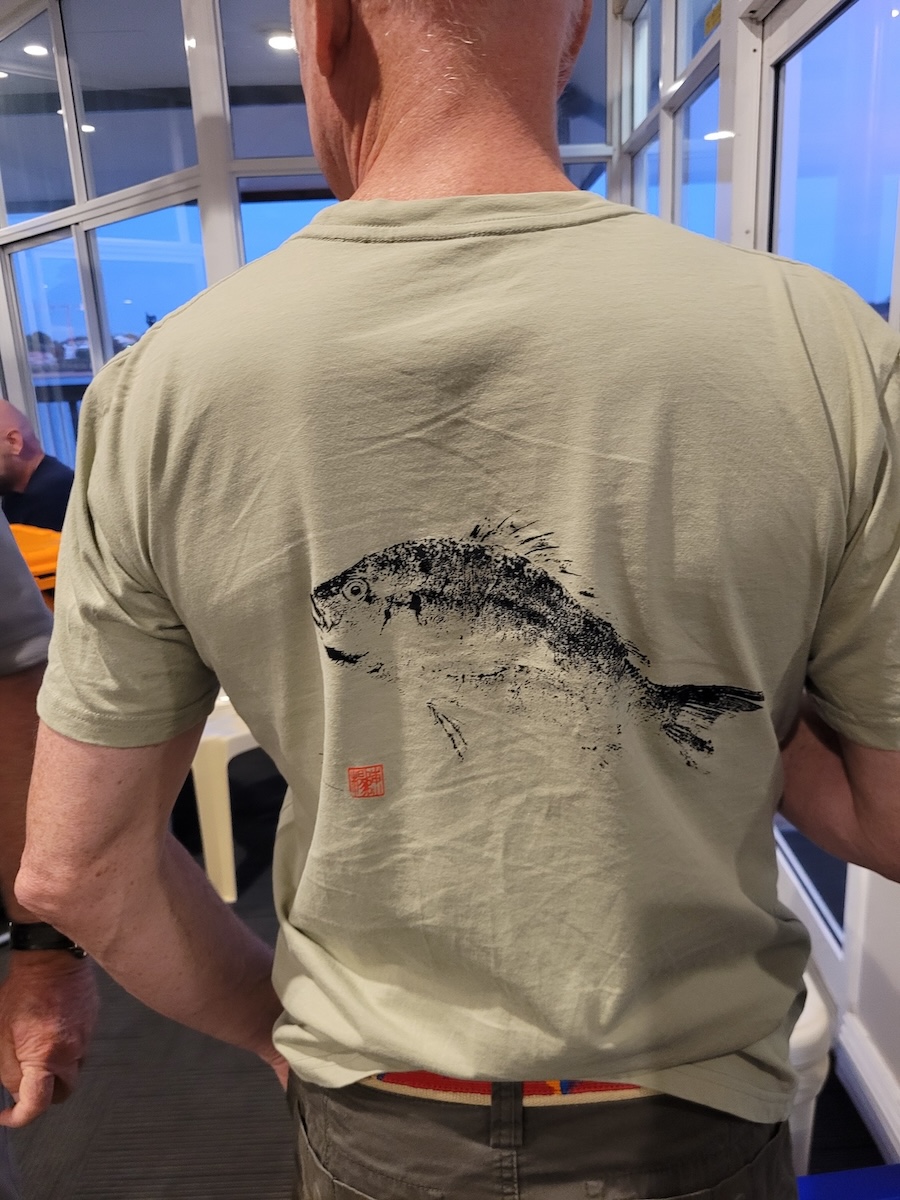 Been a while in getting these done. This is a print of a Black Bream done by Gyotaku by Deryck at the 2022 AGM. These will be printed early next year, ready for collection at the club meeting in February/March 2024. We will not be holding any stocks, so shirts need to be paid up in full. We will close off all orders 31 December 2023. It's not likely that we will do a second run, so if you're keen, get in quick.
