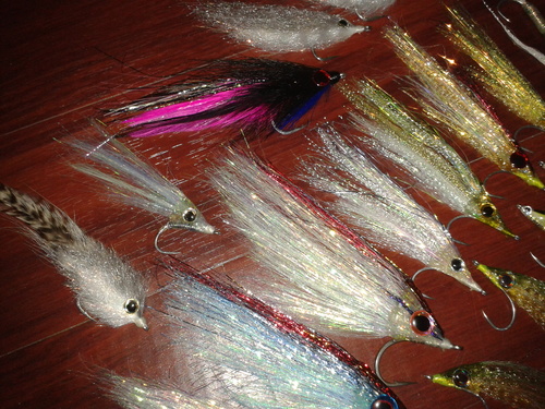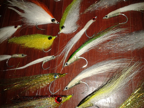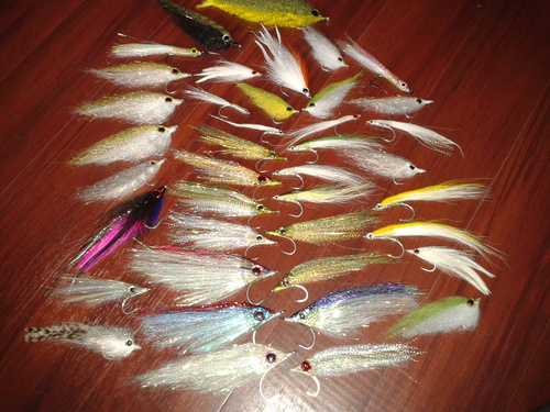* 40 flies in sizes from 5/0 down to 1/0 tied on gammas and mustad hooks. Flashy profiles, candys and deceivers. $100 the lot.