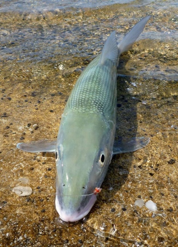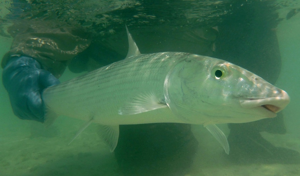 An underwater shot of Eric's big Bonefish from Paris flat, I'm not sure exactly what it's trying to say ? something along the lines of "Thank god I was caught by Eric 'Bonefish' Franco and not that clown in the cloud pyjamas taking the photo !