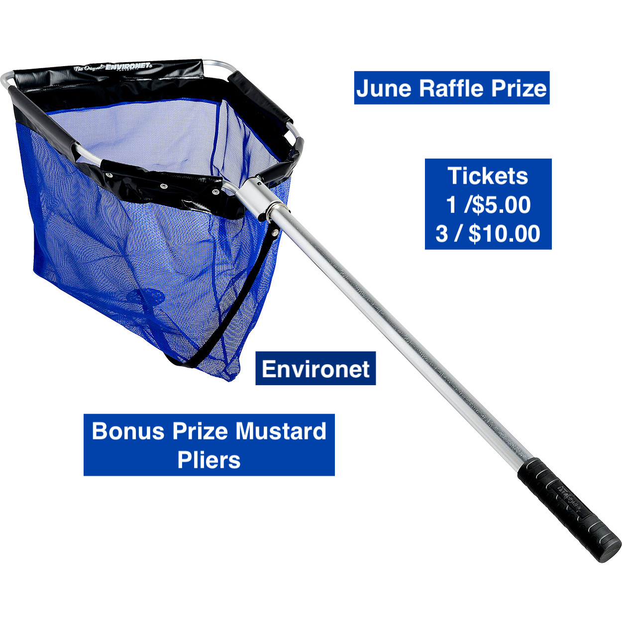 Welcome back all, This months raffle prize is a cracker up grade you landing equipment with a Environet landing net and a Mustard Pliers. Tickets are 1 for $5.00 and 3 for $10.00 Good Luck!!!!