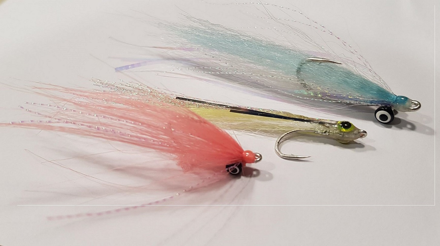 my sister in law wanted to make a present for her dad Nicky who is an avid flyfisher back home. Mainly trout, salmon, sea trout and sea bass, some of you may have met him at the odd club meet with me once or twice. So she asked me to let her tie three flies in different colours, one representing her, and the other two representing her two daughters so that she could then display them in a photograph frame and give it to her dad. We have tied up three nice flies, and she has done very very well I might add! A 2O Clouser, Size 2 surf candy and a size 2 crazy charlie gotcha. Now we are trying to figure out how to hang / display these within the photo frame. Ideally they would be out a bit from the backing so you can get the shadows and writing under each fly.
