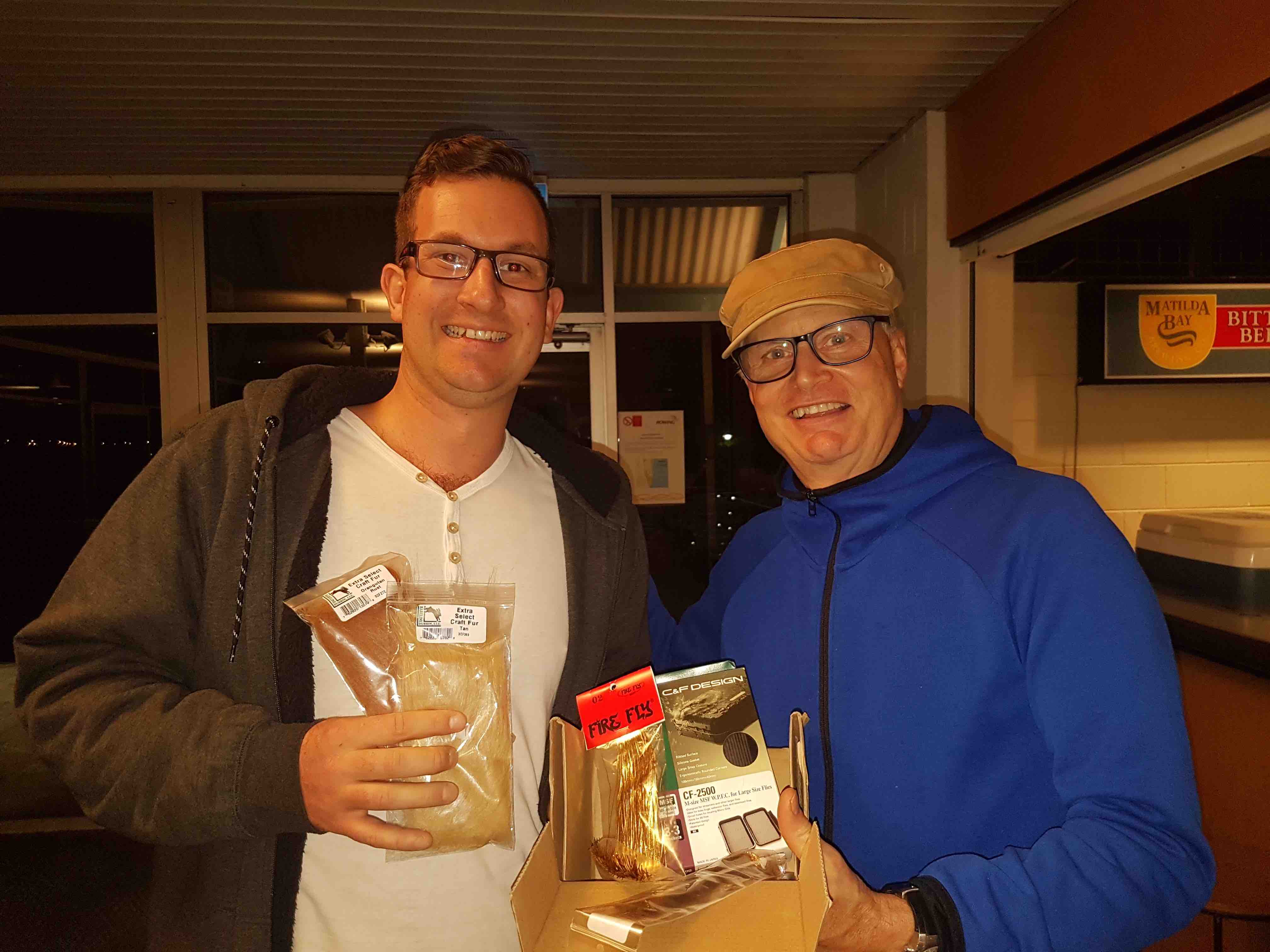 Heres one happy Saltwater Flyrodder Matt Bailey he goes home with all the materials to tie the Kalgan Clouser, well done Matt. Next month raffle prize... stay tuned till next month. Light lines <*>>><