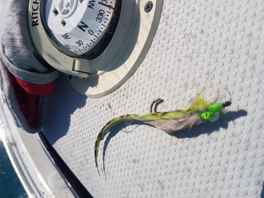 This is one of Steve's flies that got bashed up on the salmon. Missing half a dumbbell eye, as well as a snapped hook.