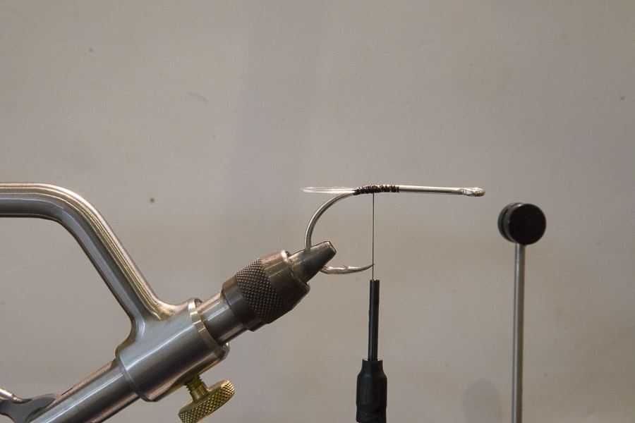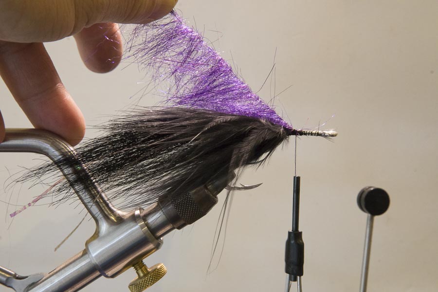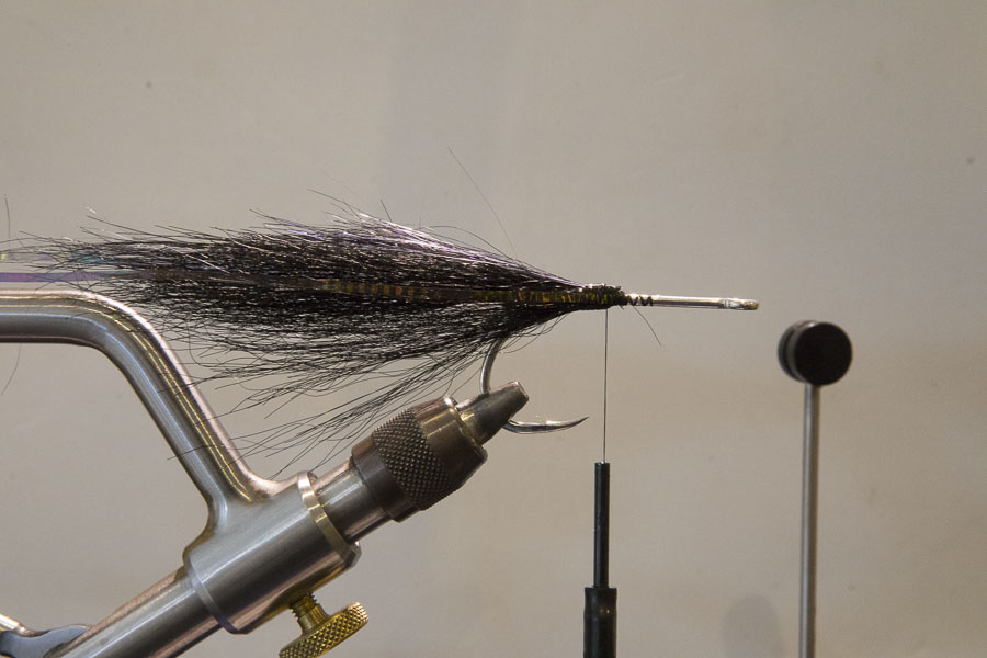 Be sure to keep brushing out fibres, so they aren’t trapped under each wrap. Two marabou feathers used here, but it all depends on what quality of marabou you have on hand.