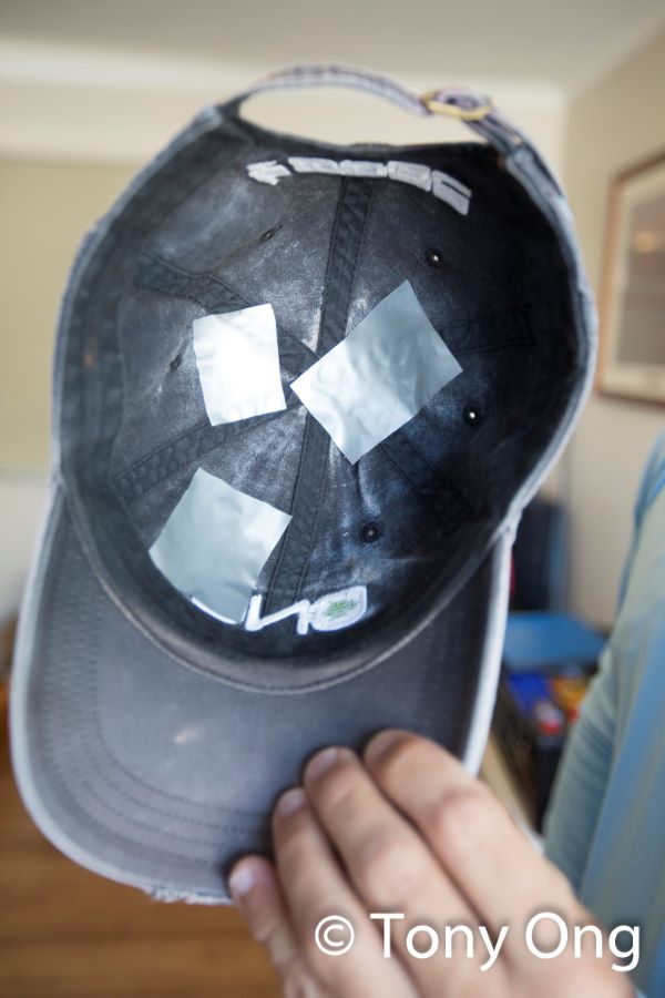 Running repairs to the lucky hat.