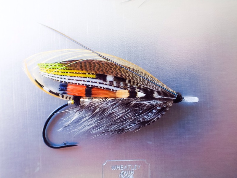 A typical atlantic salmon fly we would swing for steelhead, the silver grey