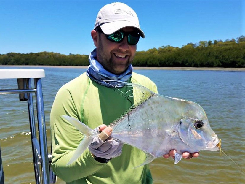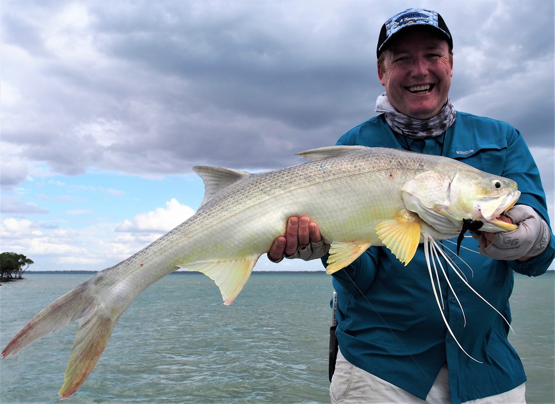 Hey guys, as some of you would be aware a group of us recently did a flyfishing trip to Weipa, although the conditions were tough with plenty of unseasonal green dirty water on the beaches and westerly winds that limited the sight fishing options plenty of fun was still had. Alan Philliskirk runs 'Fish's Fly & Sportsfishing' charters out of Weipa and if you haven't tried his operation out do yourself a favour and book a trip, I can thoroughly recommend it. Although we missed out on catching a couple of the marquee species for up that way (Permit & Bluebastards) we caught 36 different species for the trip with some outstanding captures ticking a few fish off our bucket lists. We will do a talk on this trip at the club meeting early next year, but for now here is a few photos to wet your appetite. Some of the other boys will no doubt add a couple of their own pics. :)