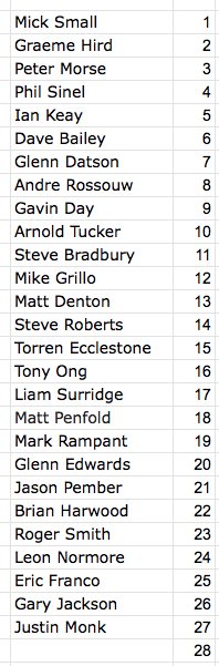 These are the people I currently have on the list of attendees. If you think you have already given me your confirmation and you don't see your name there, please contact me ASAP (0400 340 900)