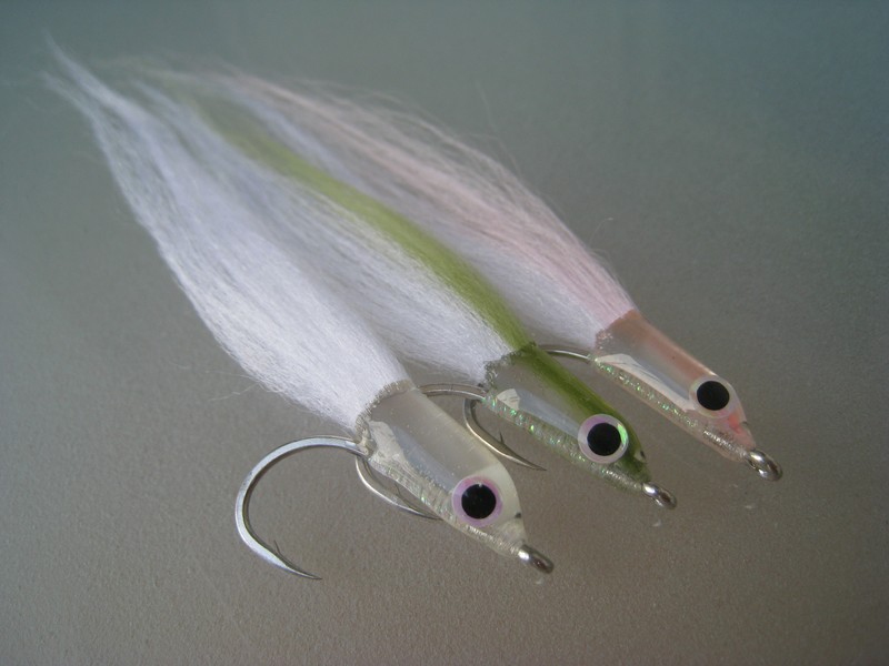 November’s fly of the month is the Tuna Candy which is simply a species-specific version of the Surf Candy fly pattern made famous primarily by American fly tyer Bob Popovics. The Tuna Candy is a very effective small baitfish pattern that is my first-choice fly for hunting Tuna. Pretty much all Tuna species can be caught with this fly as well as other species like Queenfish, Tailor, Australian Salmon (Kahawai), Mackerel, Herring, Giant Herring etc etc. The Tuna Candy can be tied in a variety of colours and colour combos, my favourite is clear over white, but olive over white, grey over white, pink over white and blue over white all work well. The original pattern was tied using Super hair or Unique hair for the body, but other materials like Polar fibre, Holofusion and Slinky fibre are popular, also Bucktail works very well just not as durable as the synthetic materials. This fly is easy to cast, doesn’t foul much and is highly durable.