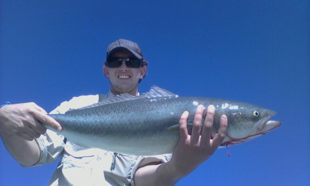 Got a call from Terry who's down at Dunsborough for a couple of days. The salmon have arrived and they are finding reasonable schools of fish. They're cooperating by taking flies eagerly. Big fish as well, as they the smallest that they landed was 5kg.